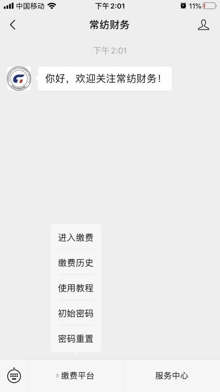 1.打开微信,扫一扫常纺财务公众号,进入常纺财务微信公众平台。