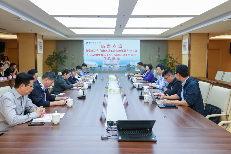 2024年10月16日上午,新疆维吾尔自治区总工会纺织服装产业工会沙丽哈·安尼瓦尔别克副主席一行17人来best365官网开展“苏新”两地纺织行业产业工人队伍建设改革调研交流活动。江苏省财贸轻纺工会主任胡建明、常州市总工会副主席徐亚明等有关领导陪同参加调研。学校党委副书记王顺明,相关职能部门和二级学院领导、老师参加调研。会议由王顺明主持。